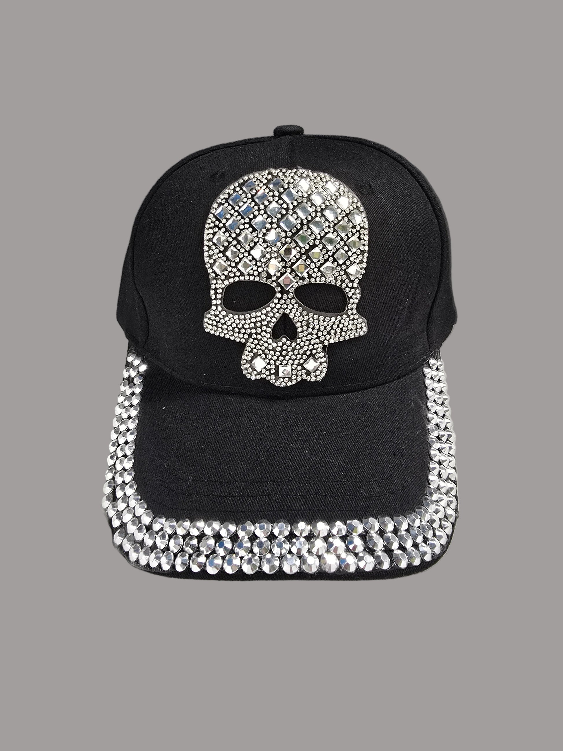 Elevate your edge with this striking black hat, adorned with a studded skull patch and gleaming embellishments that command attention. The sophisticated bling detailing transforms a classic silhouette into a statement piece—perfect for those who blend rugged attitude with refined style. Durable construction meets bold aesthetics, making this hat an essential accessory for anyone who refuses to compromise on attitude or quality.